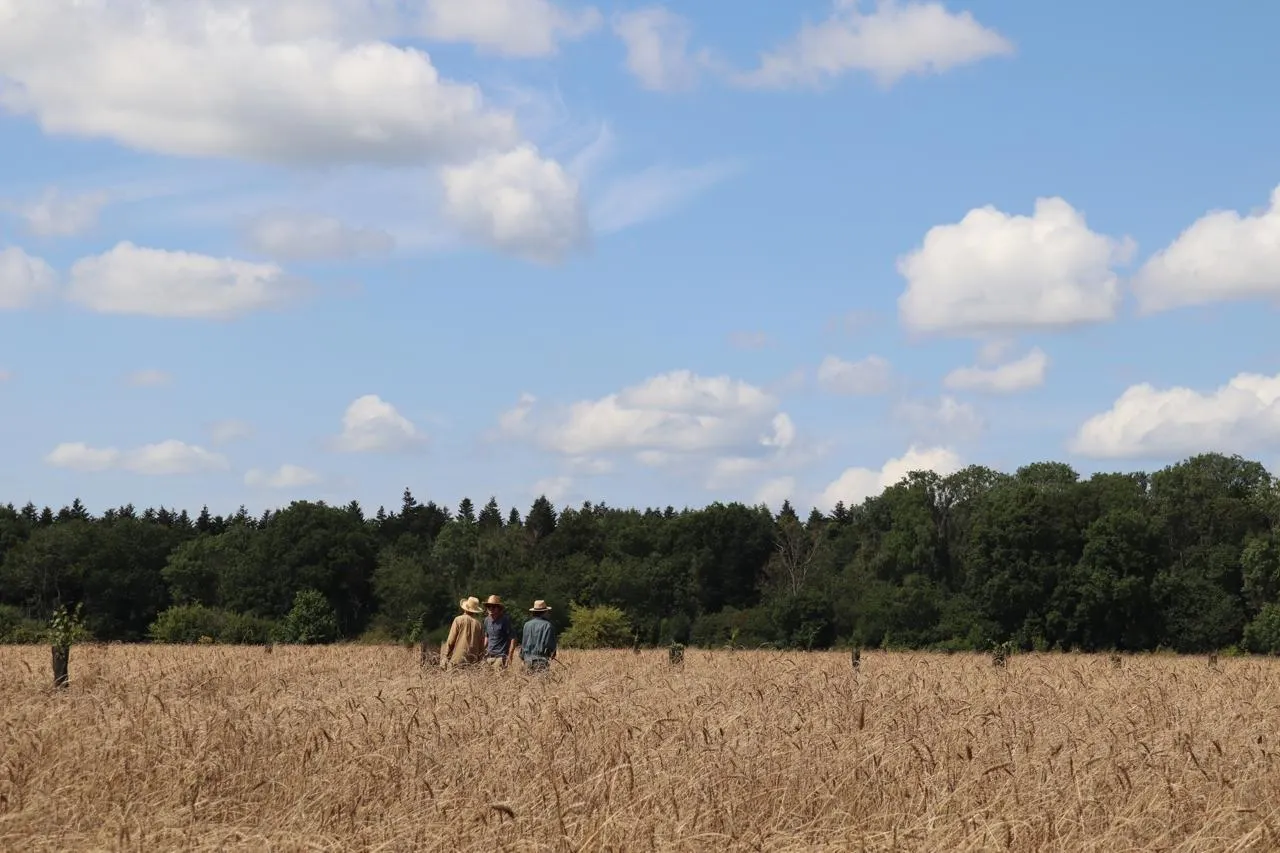 À proximité du Sap-en-Auge (Orne), l’association du Domaine sauvage du Costil gère, entre autres, une parcelle de trois hectares de blés anciens. Lundi 28 juillet 2025, elle a réuni une vingtaine de bénévoles pour une moisson collaborative et pédagogique.