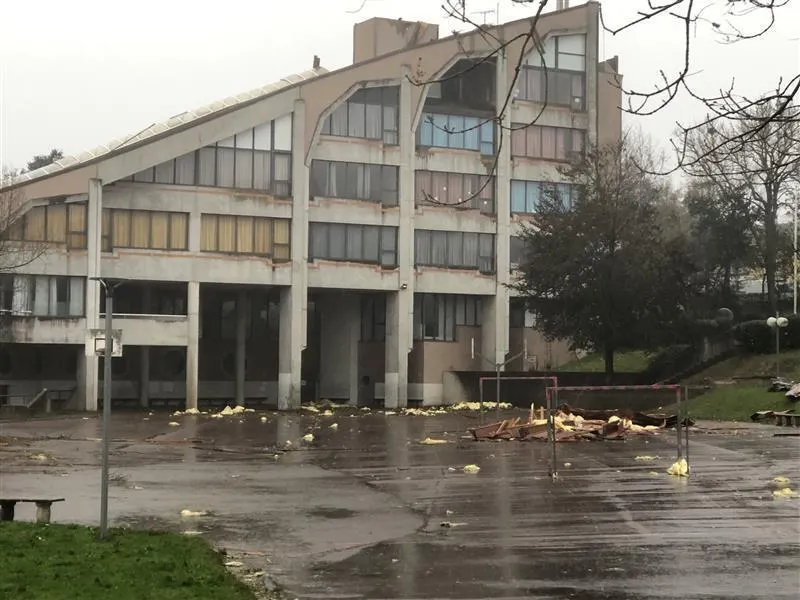 La toiture du collège Jacques-Prévert de Coutances (Manche) a été arrachée par la tempête. Ouest-France