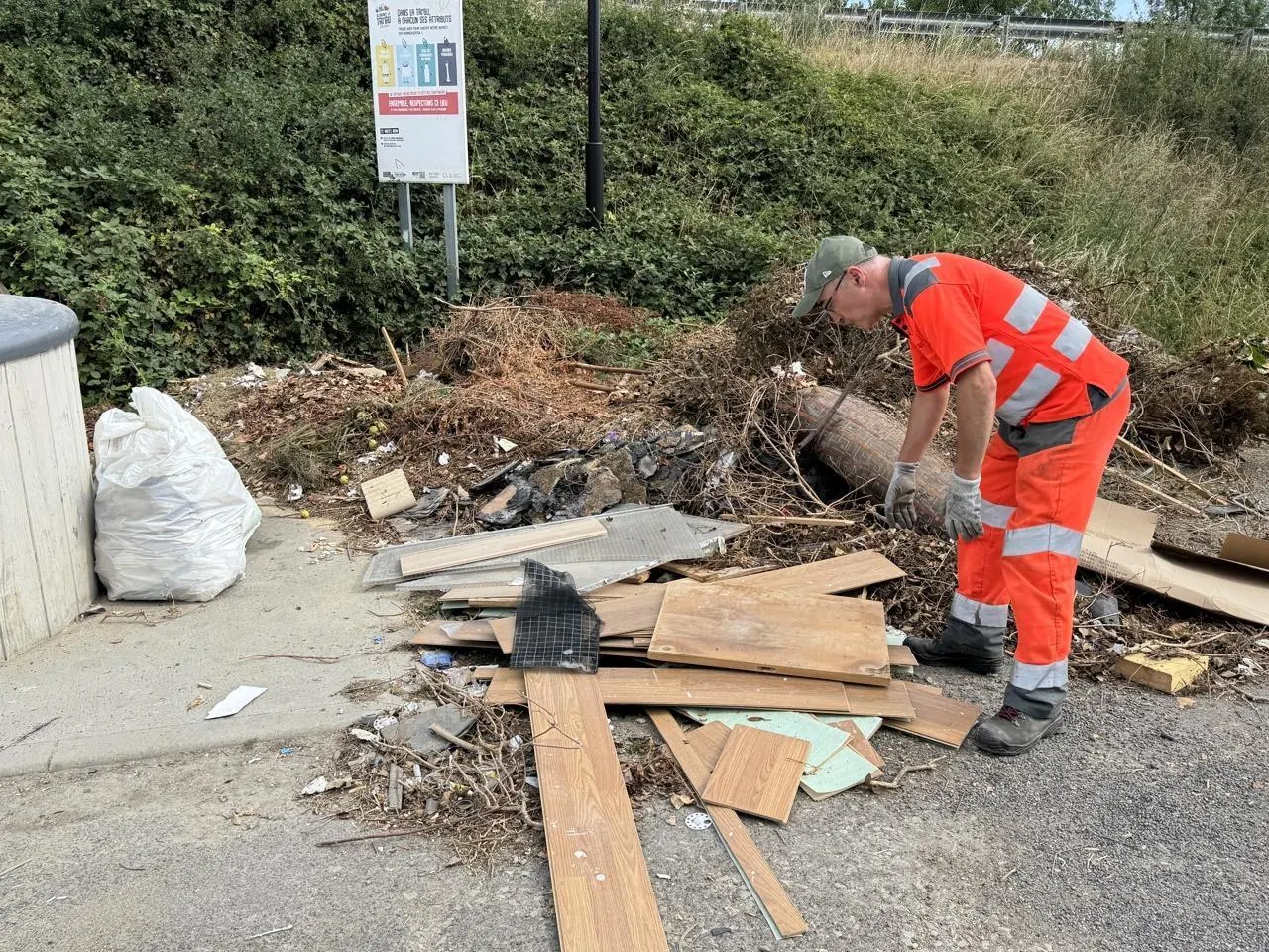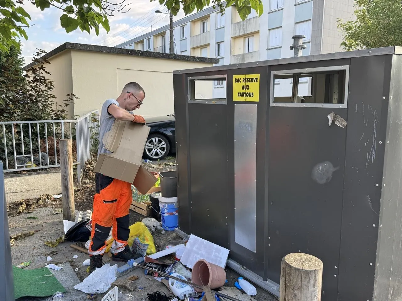 Toute la matinée, ils passent en revue la quinzaine de points d’apport volontaire du quartier. « Notre mission principale, c’est le nettoyage des rues et le désherbage des espaces verts dans Alençon. Une fois par semaine, on va à Courteille remettre les sacs-poubelles des habitants dans les conteneurs et ramasser les encombrants pour les mettre en déchetterie. C’est à l’habitant de faire tout ça. Beaucoup de personnes s’en foutent et laissent leurs déchets à l’air libre », souffle Andy Lacourt, 37 ans.