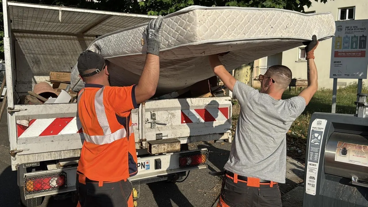 Ce gaillard, douze ans d’expérience, a vu la situation des déchets se dégrader ces dernières années. Exemple dans la rue Jean-Mermoz. Un matelas a été déposé dans un buisson à côté des conteneurs. « On en trouve plein, affirme Christopher Mauvalais. En ce moment, c’est la saison des déménagements. Les gens font le tri, déposent la literie dans la rue et s’en vont. » Parfois, c’est de l’électroménager qui termine dans la benne du camion. « On transporte des frigos, des lave-linge… Heureusement qu’on est trois », prolonge son collègue Alexis.