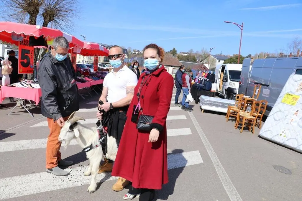 La fièvre donne parfois des hallucinations. Dans une ville de L’Aigle (Orne) rongée par l’épidémie de Covid-19, quelques-uns ont cligné deux fois des yeux pour être sûrs que c’est bien un bouc qui se promenait dans les allées du marché, ce mardi 23 mars 2021.