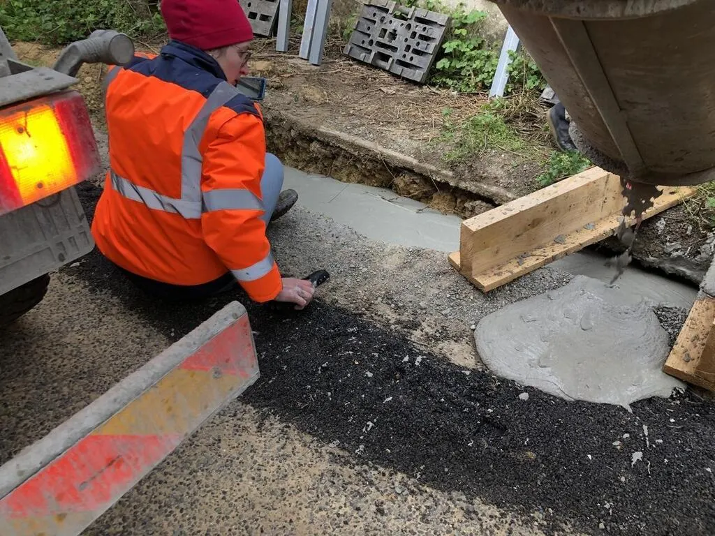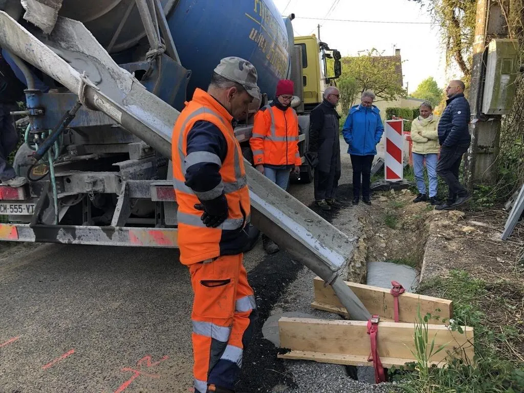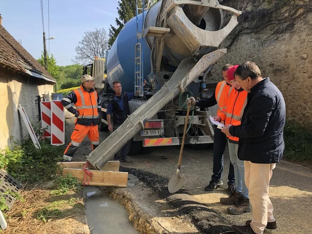 Ce mercredi 27 avril 2022, le conseil départemental de l’Orne a fait procéder au rebouchage du trou qui a été décelé en février sous la route et une maison du hameau de La Viosne.