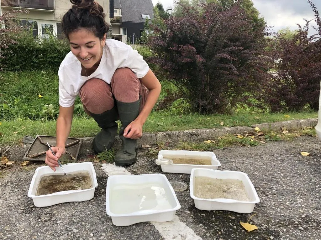 Salariée de l’Anper, Association nationale pour la protection des eaux et rivières basée à Sainte-Suzanne-sur-Vire (Manche), elle glisse précautionneusement une espèce de filet au maillage ultra-serré dans le ruisseau, en agite doucement le fond de l’autre main, collecte du presque invisible. L’objet de sa convoitise ? Les micro-invertébrés, ces toutes petites bestioles ignorées de tout un chacun.