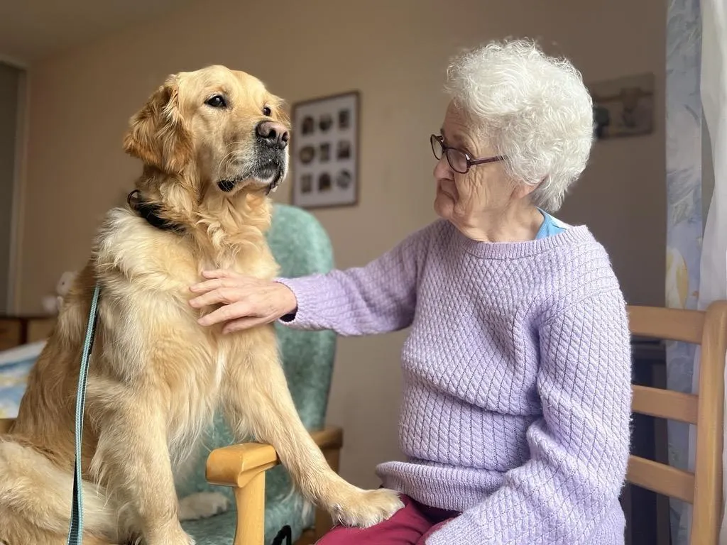 Depuis quelques mois, « Sparrow », jeune golden retriever de 2 ans et demi, a rejoint l’équipe de l’Ehpad d’Écouché-les-Vallées (Orne). Grâce lui, les résidents participent plus aux activités, se confient, regagnent confiance en eux. Reportage.