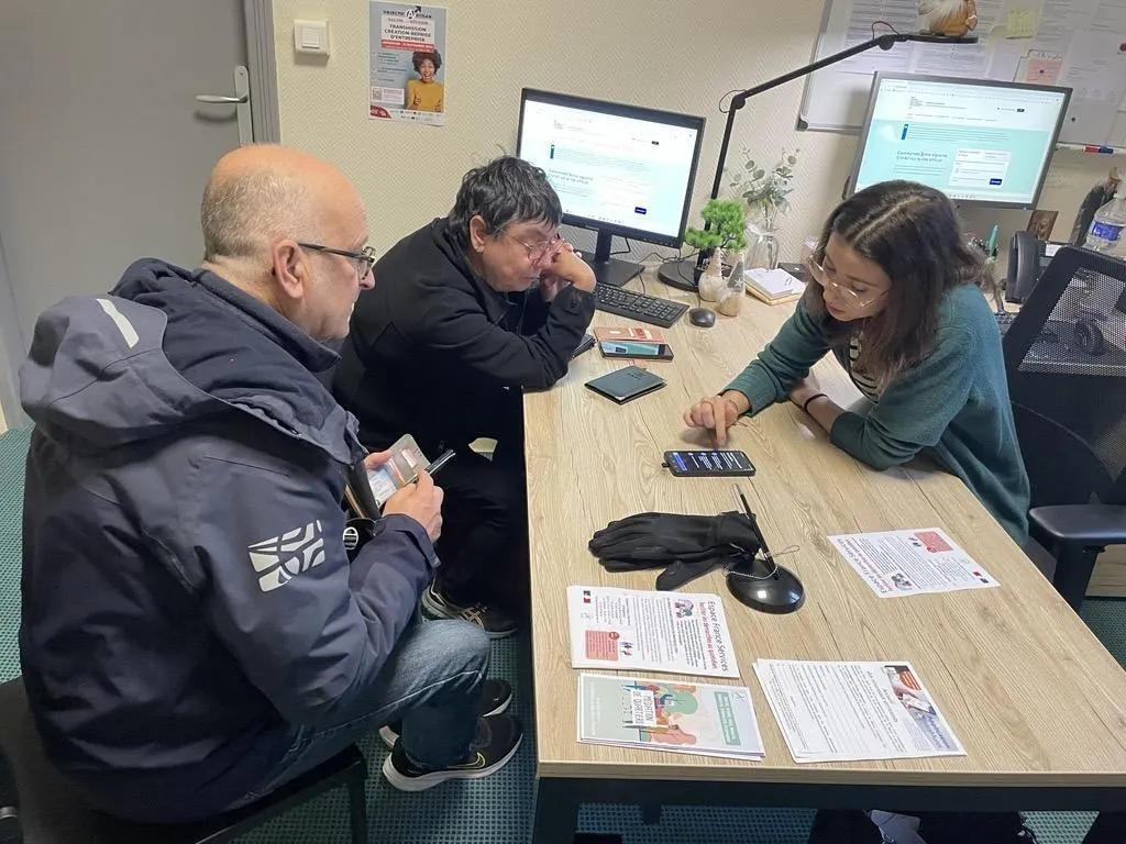 Dominique et Jean-Michel Dusnasi viennent trouver de l’aide auprès d’Élisa Hue à la Maison France services d’Argentan. © Ouest-France