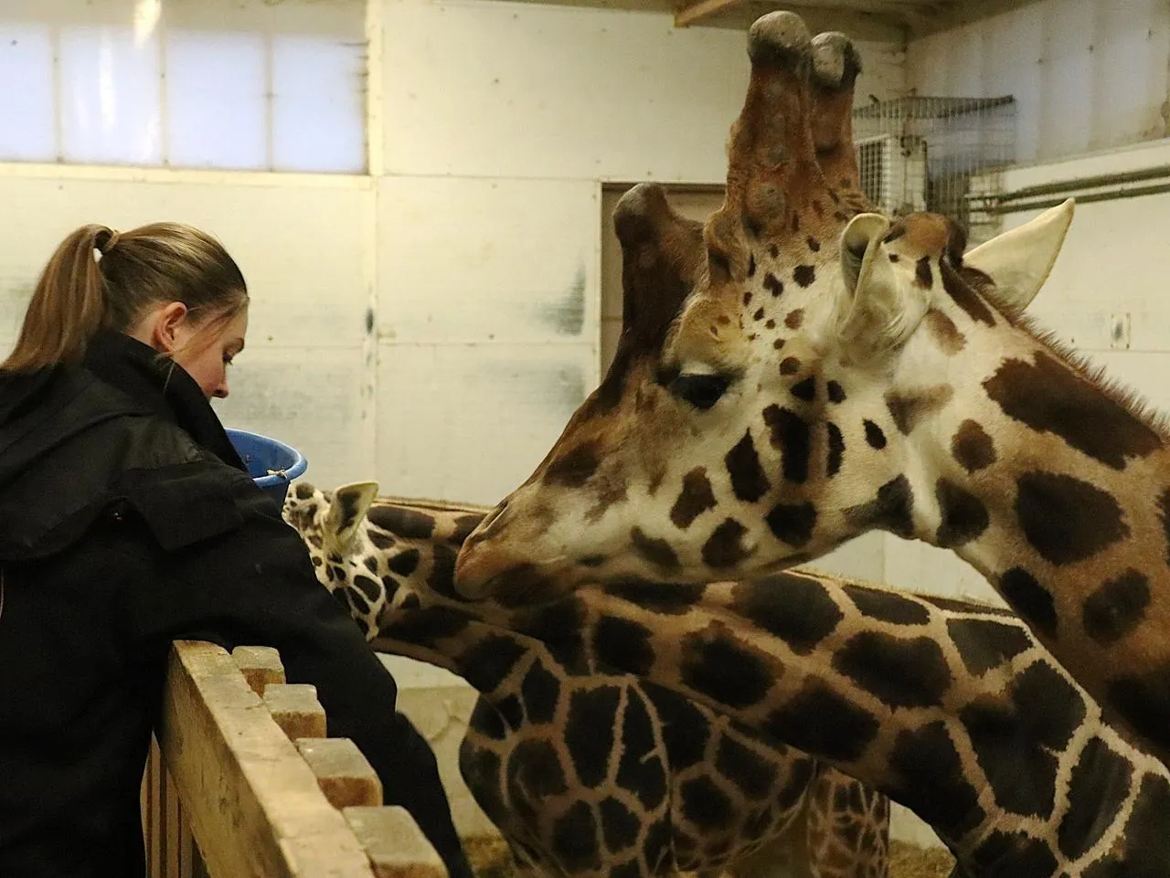 Julie Leclerc, soigneuse au Cerza, commence ici sa journée par le petit-déjeuner des girafes. © Ouest-France