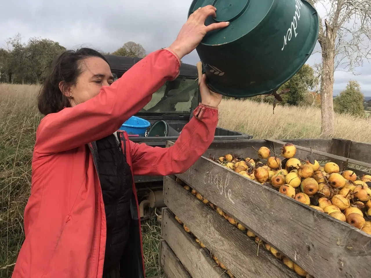Mardi 21 octobre 2025, la récolte des poires bat sont plein à Mantilly à la Ferme des Grimaux, dans l’Orne. © Ouest-France