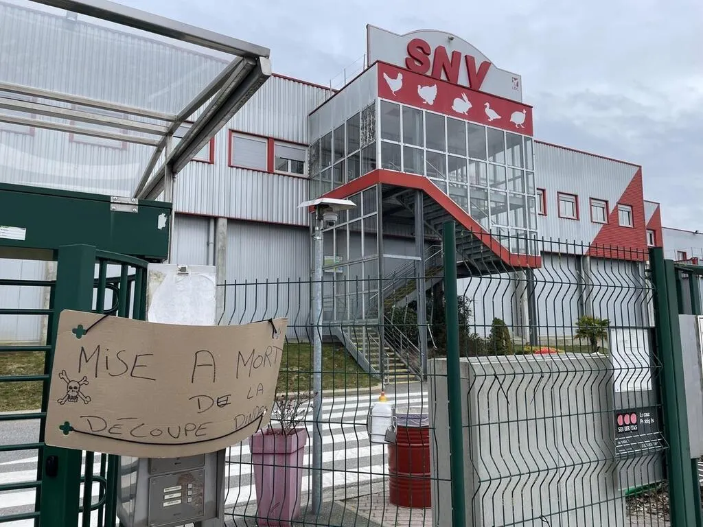 Des salariés de SNV à la Chapelle-d'Andaine, dans l’Orne, ce sont mis en grève pour protester contre le déplacement de l’atelier découpe de dinde, prévu à l’horizon 2024. © Ouest-France