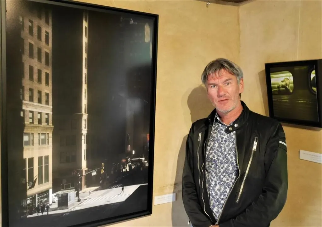 Jean-François Mollière entre deux photographies de New York (à gauche) et de Chicago. © Ouest-France