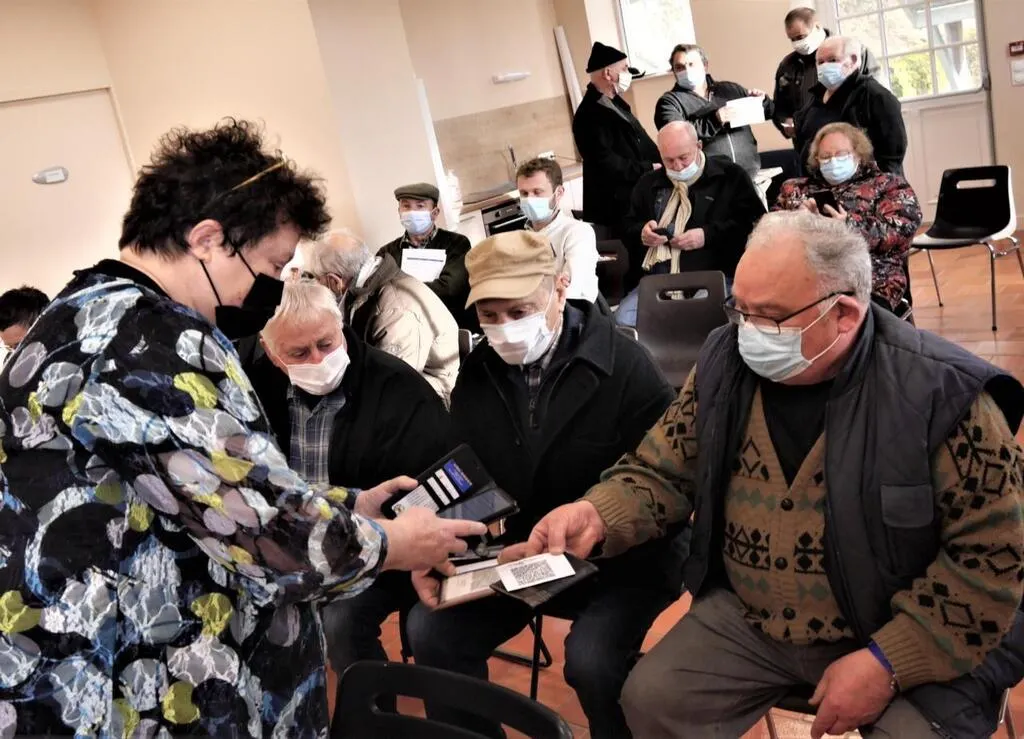 La présidente Frédérique Friot contrôle le passe sanitaire des participants à l’assemblée générale. © Ouest-France