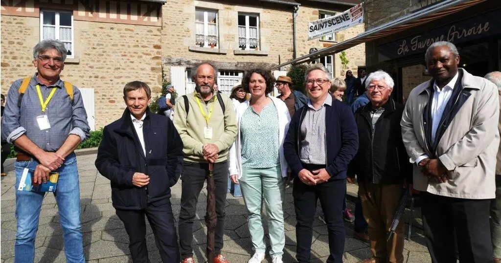Lors de l’inauguration des Rencontres, personnalité et élus se préparent pour rencontrer les 31 artistes sélectionnés, installés dans le village. © Ouest-France