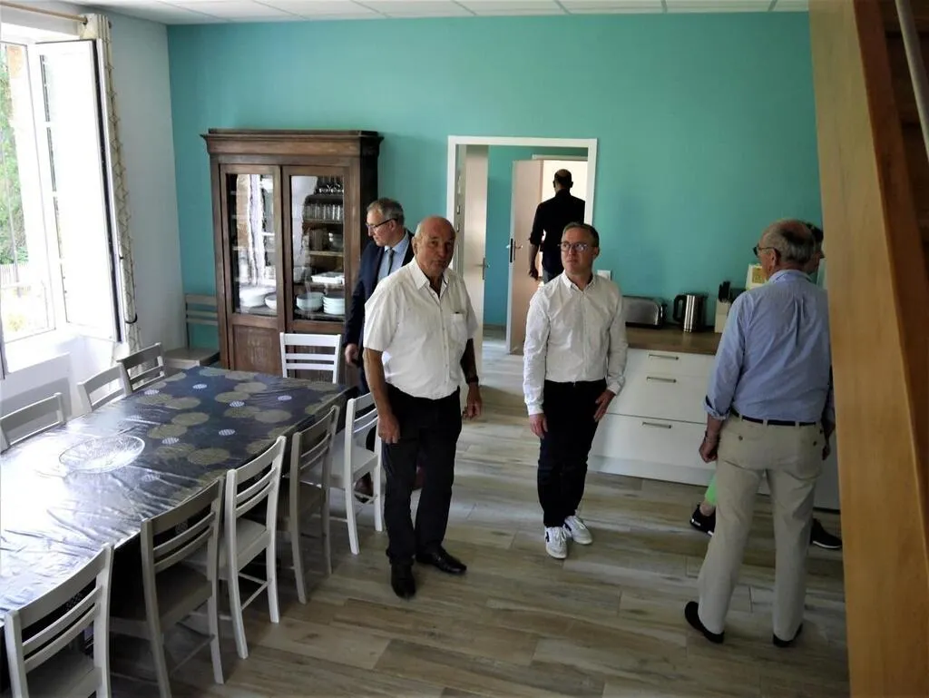 Au rez-de-chaussée de l’ancien bâtiment de la mairie, l’architecte propose une salle culturelle pour des expositions, réunions et manifestations. Les élus ont pu découvrir une belle exposition des œuvres des neuf artistes locaux, dans un espace lumineux aux couleurs pastel. À l’étage, le gîte comprend un petit salon, une salle à manger avec cuisine intégrée, lave-vaisselle, douches et sanitaires, réserves. Les quatorze couchages confortables sont répartis sur deux niveaux avec une mezzanine.