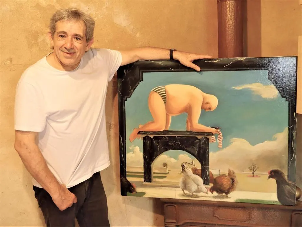 L’Aiglon Olivier de Rivaz, 62 ans, évoque avec humour son parcours : « Après des études en arts plastiques au Lycée Jeanne-d’Arc-de-Rouen, j’ai multiplié les expériences : peintre amoureux du dessin, des techniques classiques à l’huile, du glacis, du figuratif, j’ai privilégié l’observation de notre société. »
