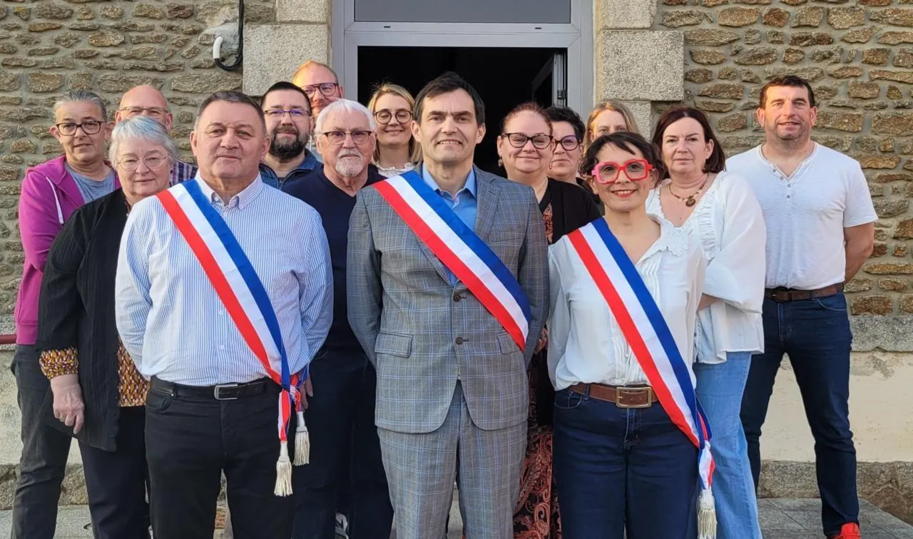De gauche à droite, au premier rang : Alain Hervé (1er adjoint), Guillaume Julien (maire), Stéphanie Halley (2e adjointe). 2e rang : Sylvie Launay, Joël Demargne, Charlotte Davoust, Isabelle Chevalier. 3e rang : Sophie Millet, Didier Cochelin, François Ruggeri, Pierre Loas, Cindy Clement-Duval, Christelle Berthelemy, Aurélie Houel et Yannick Rigault. © Ouest-France