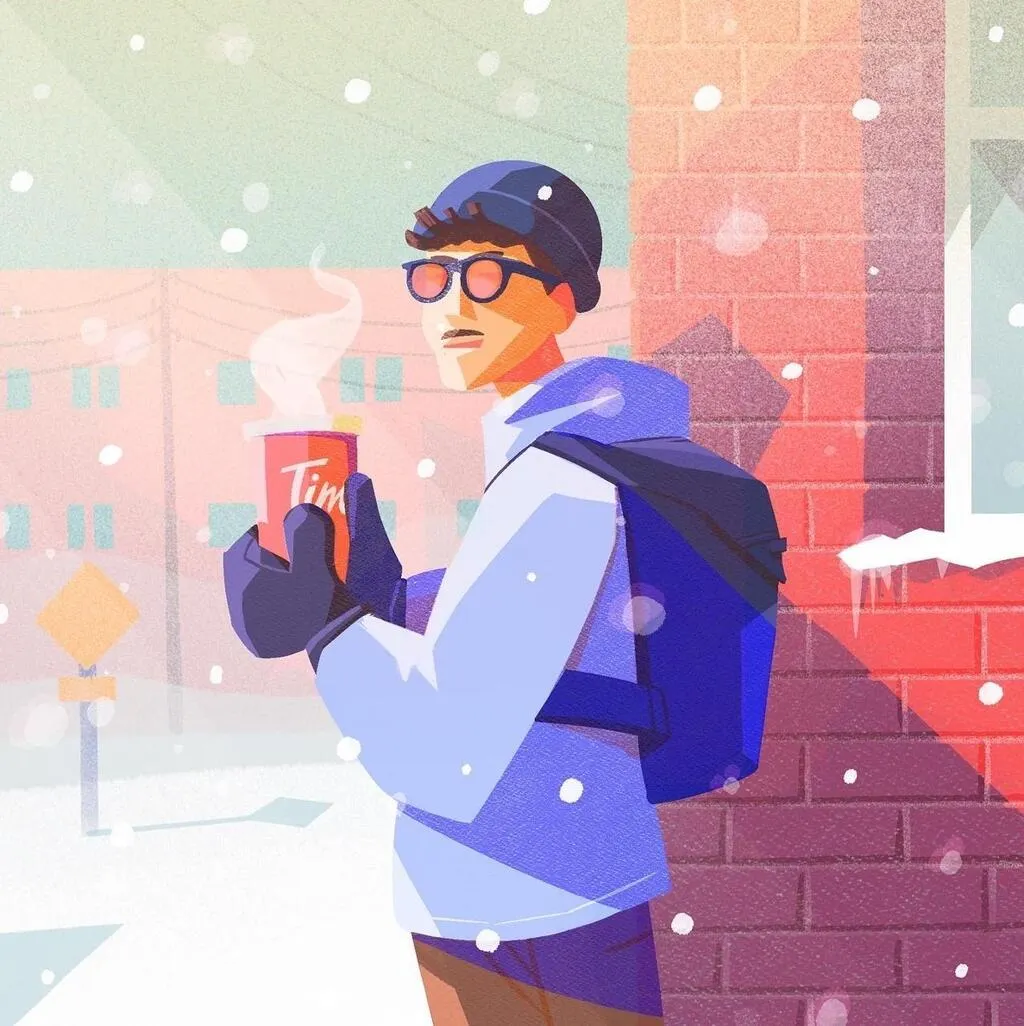 Autoportrait de Romain Blais, un jeune illustrateur originaire de Saint-Georges-des-Groseillers (Orne) affrontant le froid montréalais. Romain Blais