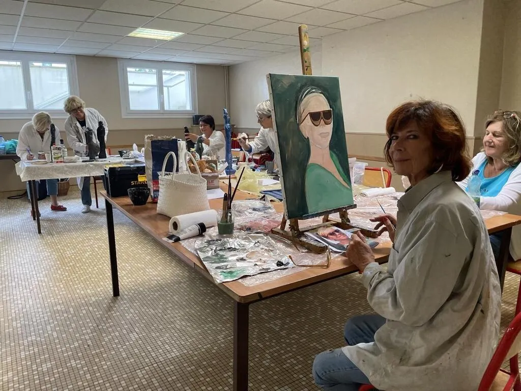 Dans l’atelier peinture des artistes de la Vère, qui organisent une exposition ces 14 et 15 octobre 2023 à Saint-Georges-des-Groseillers. © Ouest-France
