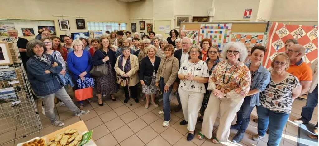 Ici accompagnés par le maire Gérard Lurçon et par la présidente Françoise Roques, plus d’une trentaine d’élèves des ateliers de l’Association familiale ont exposé leurs travaux samedi et dimanche. © Ouest-France