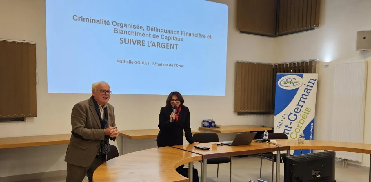 La sénatrice Nathalie Goulet a présenté ses travaux parlementaires sur la délinquance financière et la criminalité organisée, vendredi, à la mairie, devant une vingtaine de personnes, notamment les deux candidats à la mairie, Étienne Lefebvre et Marc-Antoine Malfilâtre.