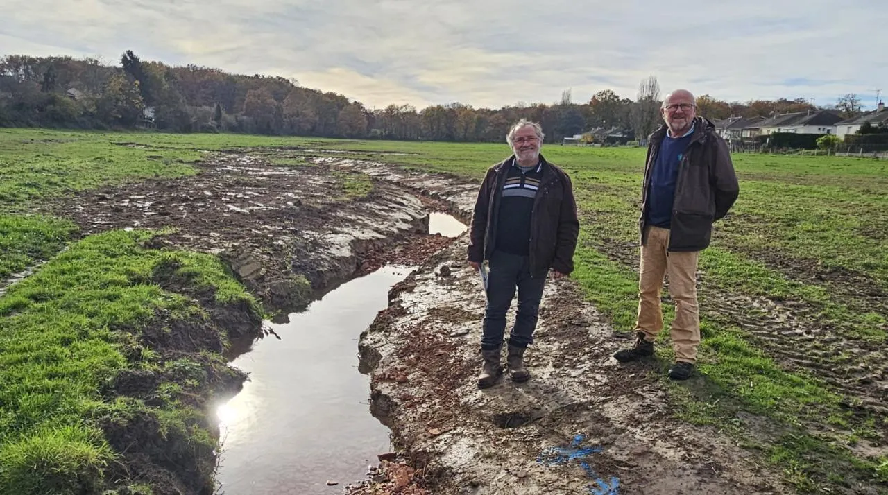 Dominique Tafforeau et Jacques Godderidge supervisent le projet de reméandrage du ruisseau des Aulnays. © Ouest-France