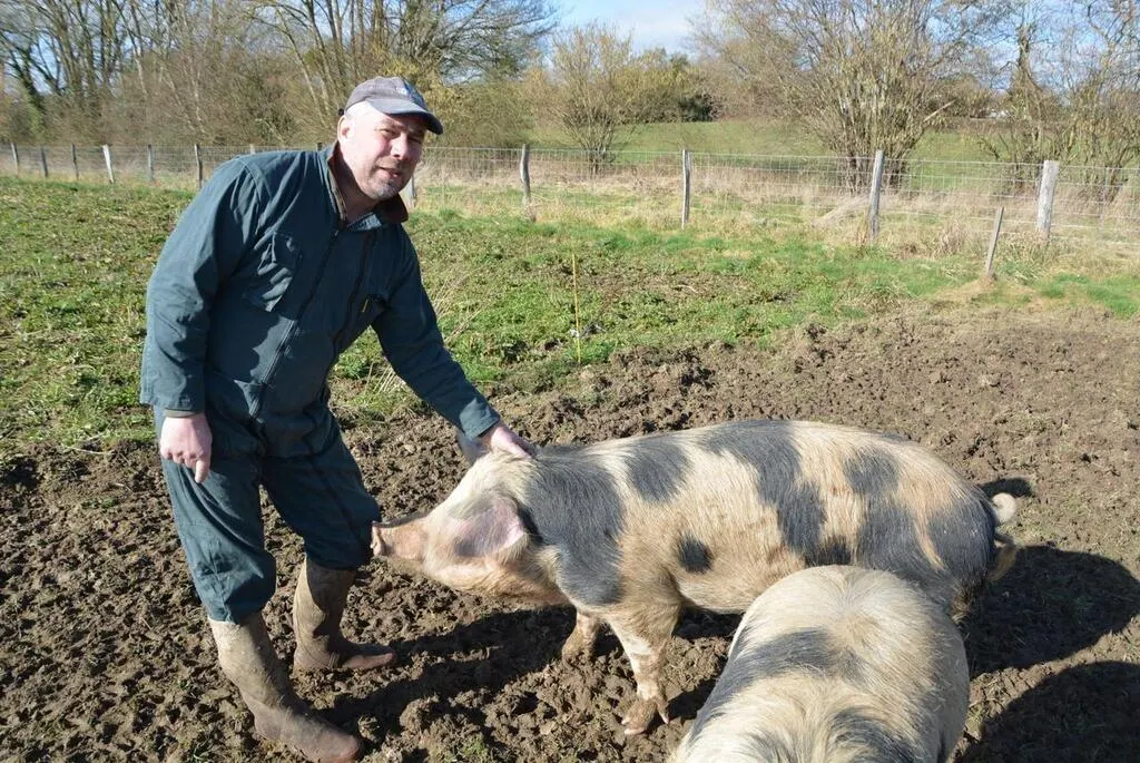 Jérôme Lepoivre dirige une exploitation agricole d’élevage et céréalière à Saint-Ouen-de-Sècherouvre dans l’Orne. Depuis 2017, il élève le cochon de Bayeux qu’il transforme en viande et charcuterie.