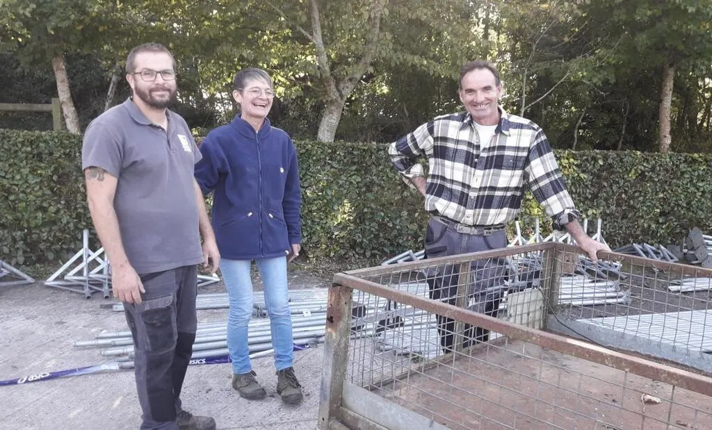 Romuald Pélerin, président d’Activ’Orne ; Sophie Machado et Pascal Bouquerel, lors du montage des structures d’accueil pour le trail de samedi et dimanche. © Ouest-France