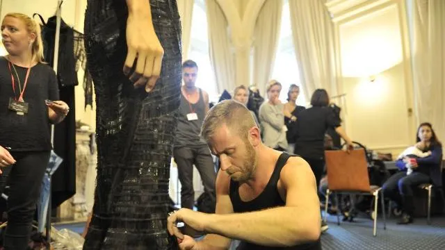 Le créateur et styliste Eymeric François s’est fait une spécialité de la broderieavec des épingles. © Pascal Paulic