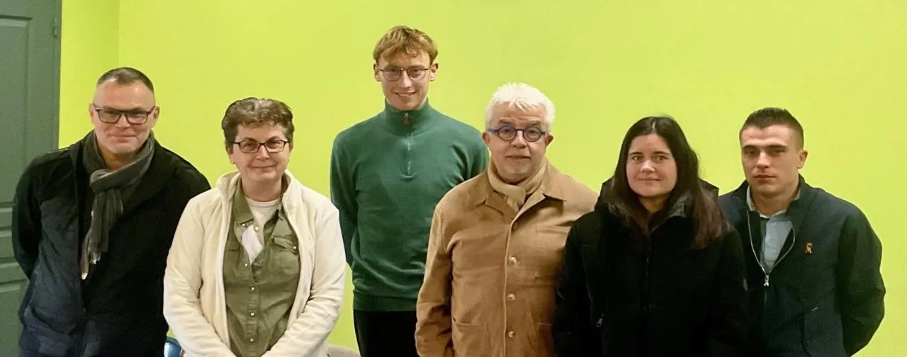 De gauche à droite, Yann Choupeaux, vice-président ; Catherine Osmont, présidente ; Lucas Moinon, encadrant ; Philippe Bigot, maire ; Laura Takac, secrétaire et Clément Bazin, trésorier. © Ouest-France