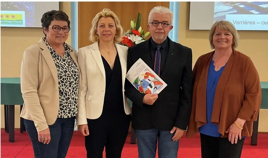 Philippe Bigot, maire, entouré de Sylvie Serais, Béatrice Buon-Métayer et Agnès Laigre, conseillères départementales, à l’issue de la remise du prix d’arrondissement 2023. © Ouest-France