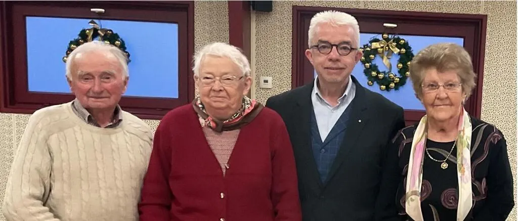 Noël communal des aînés, avec les doyens, Roger Dumas, Henriette Béguin, Lucie Rafaillot, aux côtés du maire, Philippe Bigot. © Ouest-France