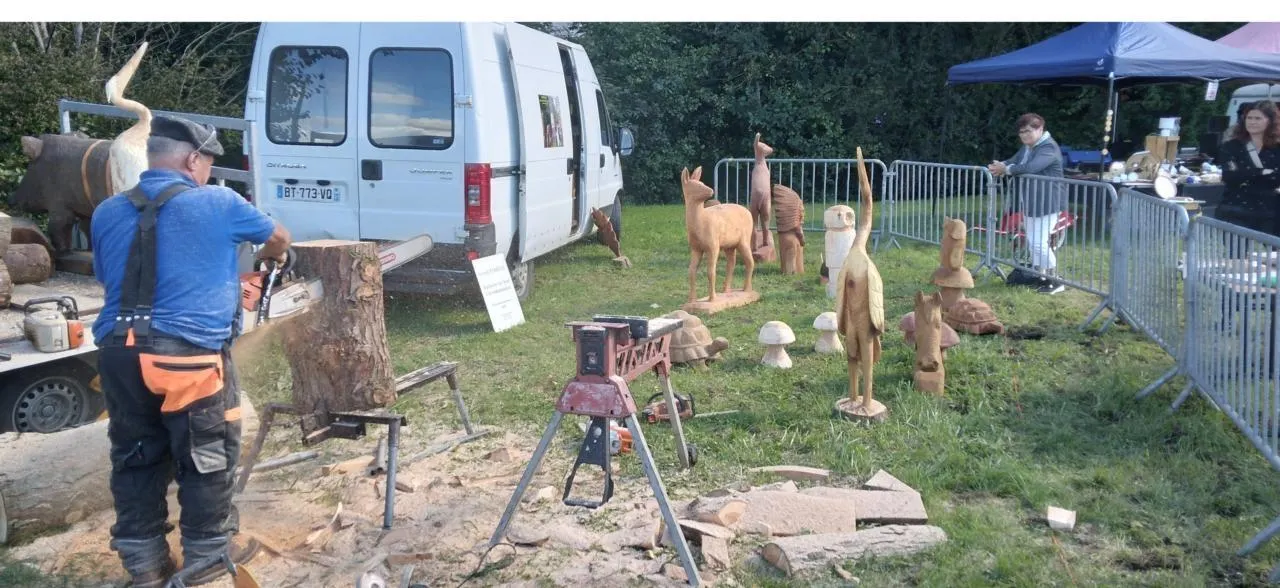 Gérard Ferruel et ses sculptures à la tronçonneuse, dimanche, lors de la 7e édition de la fête de la Nature, organisée par le comité des fêtes, présidé par Franck Deslandes. Cette fête a été organisée pour la première fois en 2018. © Ouest-France