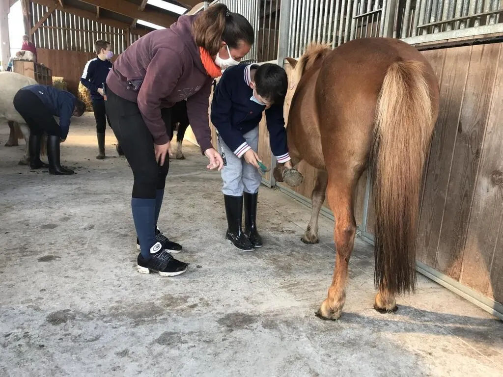 Quelques minutes après 9 h, au centre équestre, les enfants ont débuté très enthousiastes cette belle initiation. Un peu d’éthologie afin de connaître le poney pour ceux qui ne seraient pas familiers des équidés, quelques règles de sécurité à ne pas oublier. Puis chacun prend en charge un poney. Il le pansera sous le regard et avec l’aide de Karine et Lindsay. Dans le manège, chacun pourra aussi vivre avec l’instructeur, Mickaël, l’expérience de monter. Certains pour la première fois.