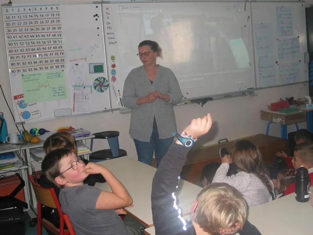 Dans la classe d’à -côté, la classe de CE1-CE2 recevait Camille Canel, agricultrice à la ferme du Rouvray, productrice de yaourts et produits laitiers. Une vidéo de Jamy Gourmaud (de l’ancienne émission C’est pas sorcier) a été diffusée pour expliquer le fonctionnement de l’appareil digestif de la vache (ruminant), et la production du lait. Les enfants ont participé en posant de nombreuses questions.