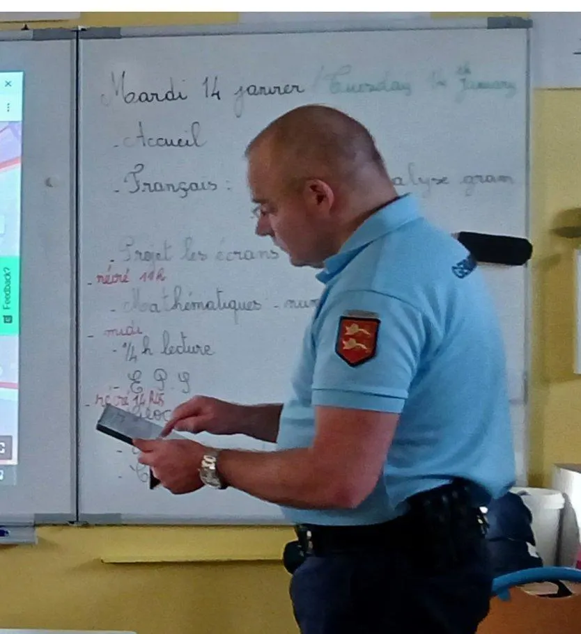 Dans le cadre du projet Du bon usage des écrans, avec le Comité d’éducation à la santé, à la citoyenneté et à l’environnement, mené dans les écoles de Sap-en-Auge, Crouttes, Vimoutiers et au collège Hée-Fergant de Vimoutiers, les élèves de CM1 et CM2 de l’école Raymond-Queneau ont bénéficié, mardi dernier, d’une intervention de l’adjudant Jérôme Lebouc, de la communauté de brigades de Gacé, concernant l’usage d’Internet et des réseaux sociaux.