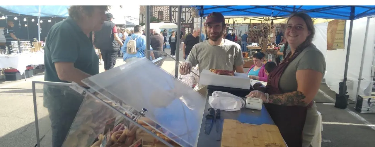 Plusieurs exposants étaient là pour la première fois, comme Laëtitia et Gauthier Schmitt :  Nous sommes charcutiers à la ferme, spécialisés dans la charcuterie alsacienne. Nous en sommes originaires, mais avons posé nos valises à Gouffern-en-Auge, avons démarré notre activité en mars. Nous élevons les cochons en plein air et tous nos produits sont fabriqués maisonÂ