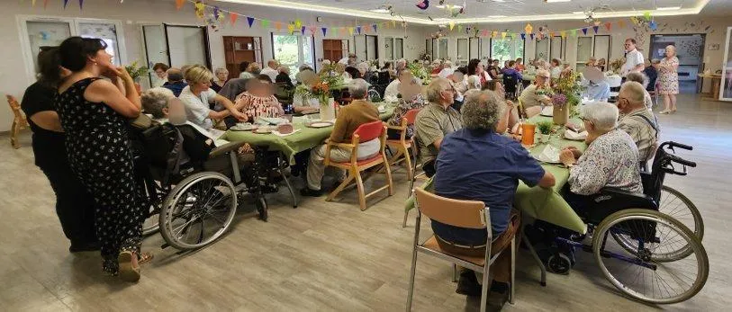 Plus de cent personnes ont été réunies. Quarante-six résidents, les familles, les élus et les salariés ont partagé le repas concocté par les cuisiniers de l’établissement. Le président de l’association Audelin Lejeune, Denis Robillard, a félicité les salariés,  pour une prise en charge de nos résidents, attentive et bienveillanteÂ