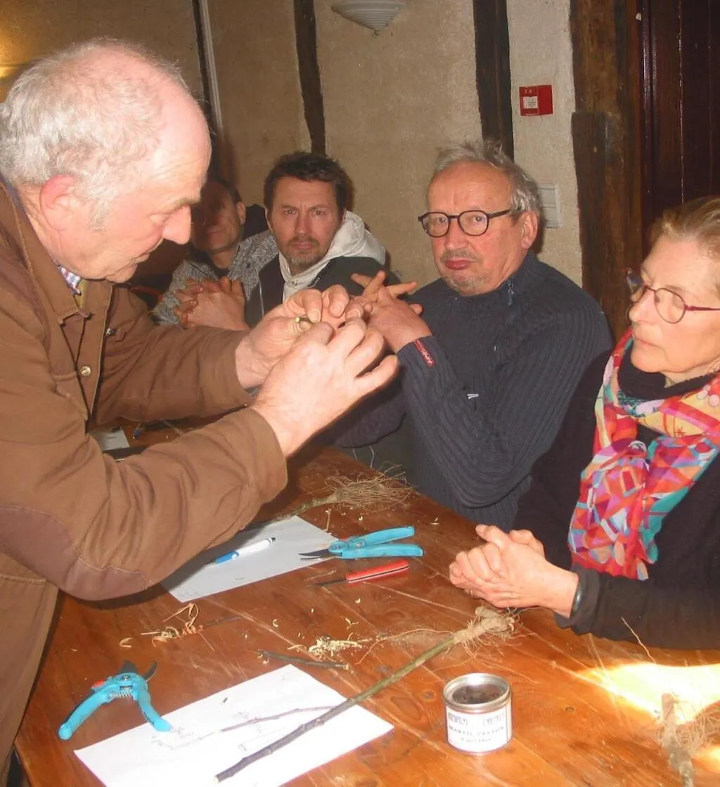 Pour assurer cette animation, Étienne était assisté de Mickaël Paris, membre de l’association. Les spécialistes ont expliqué la vie du pommier et les interventions du jardinier pour le bon équilibre et la fructification. Les intervenants ont montré les gestes du greffage et de la taille corrective et ont fait travailler les stagiaires à la greffe sur table.