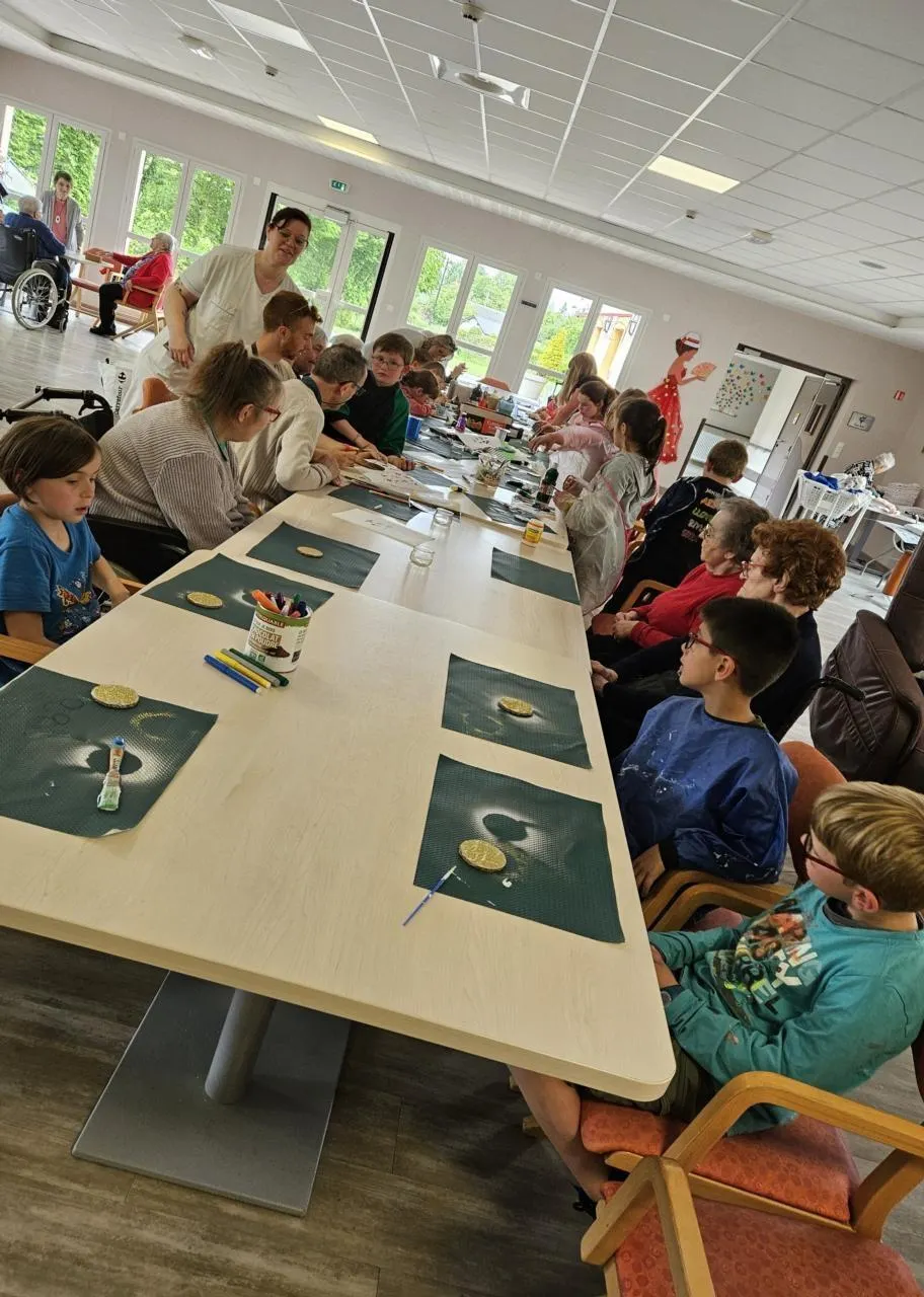 Les enfants étaient ravis de repartir avec la médaille qu’ils avaient réalisée. L’un des enfants a même offert une médaille à une résidente.