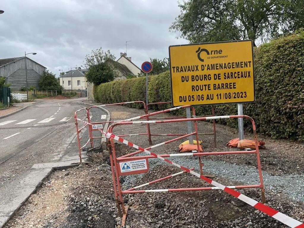 Depuis le mois de juin 2023, des travaux de voirie ont lieu dans le bourg de Sarceaux, près d’Argentan (Orne). L’objectif est de faire baisser la vitesse de circulation et sécuriser le cheminement des personnes à mobilité réduite. Une déviation est mise en place jusqu’à la fin du chantier, prévue pour la mi-septembre.