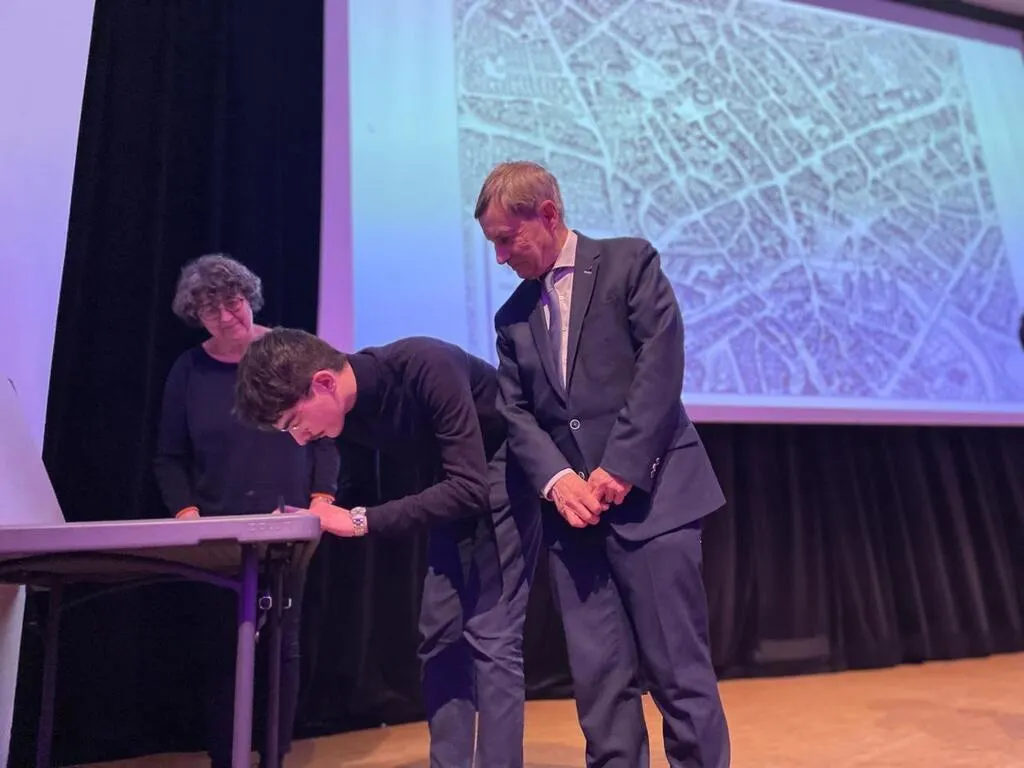 Pablo Raison a signé sa carte à l’occasion des vœux de Joaquim Pueyo. Ouest-France