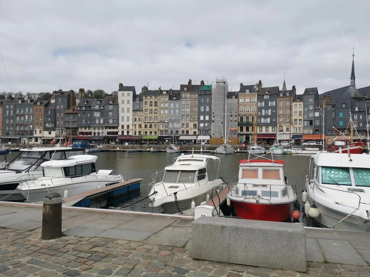 À quelques jours de l’ouverture de la saison touristique avec le week-end de Pâques, le quai Sainte-Catherine, à Honfleur (Calvados), est fermé à la circulation et les commerces fermés. © Ouest-France