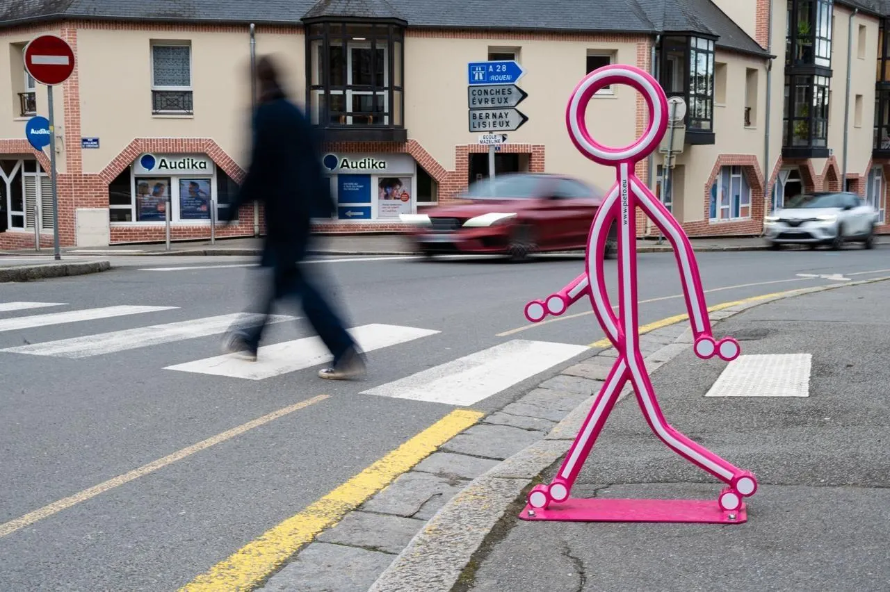 Des silhouettes dissuasives ont été installées aux abords de plusieurs passages piétons. © Ouest-France