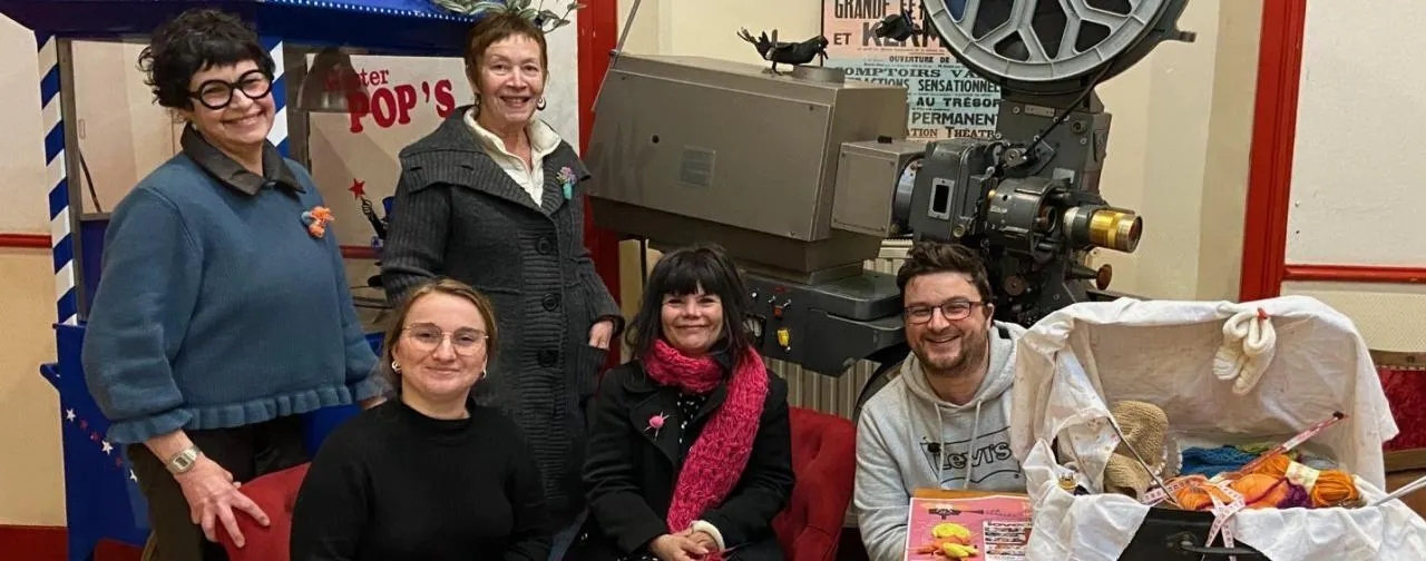 . C’est un tricot lab qui voit le jour. On pourra venir déposer au cinéma ses petits carrés tricotés, crochetés et pourquoi pas des pompons.