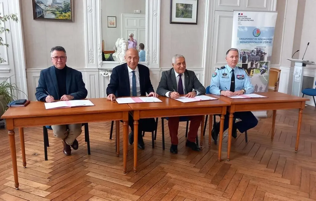 Lundi 10 mars 2025, à la mairie de Sées (Orne), le maire, Mostefa Maachi, Marc André sous préfet et directeur de cabinet à la préfecture, le colonel Pierre-Olivier Benech, chef du groupement de gendarmerie de l’Orne et Eric Le Carvennec vice-président de la communauté de communes, ont signé une convention permettant le renforcement de la sécurité sur le territoire local.