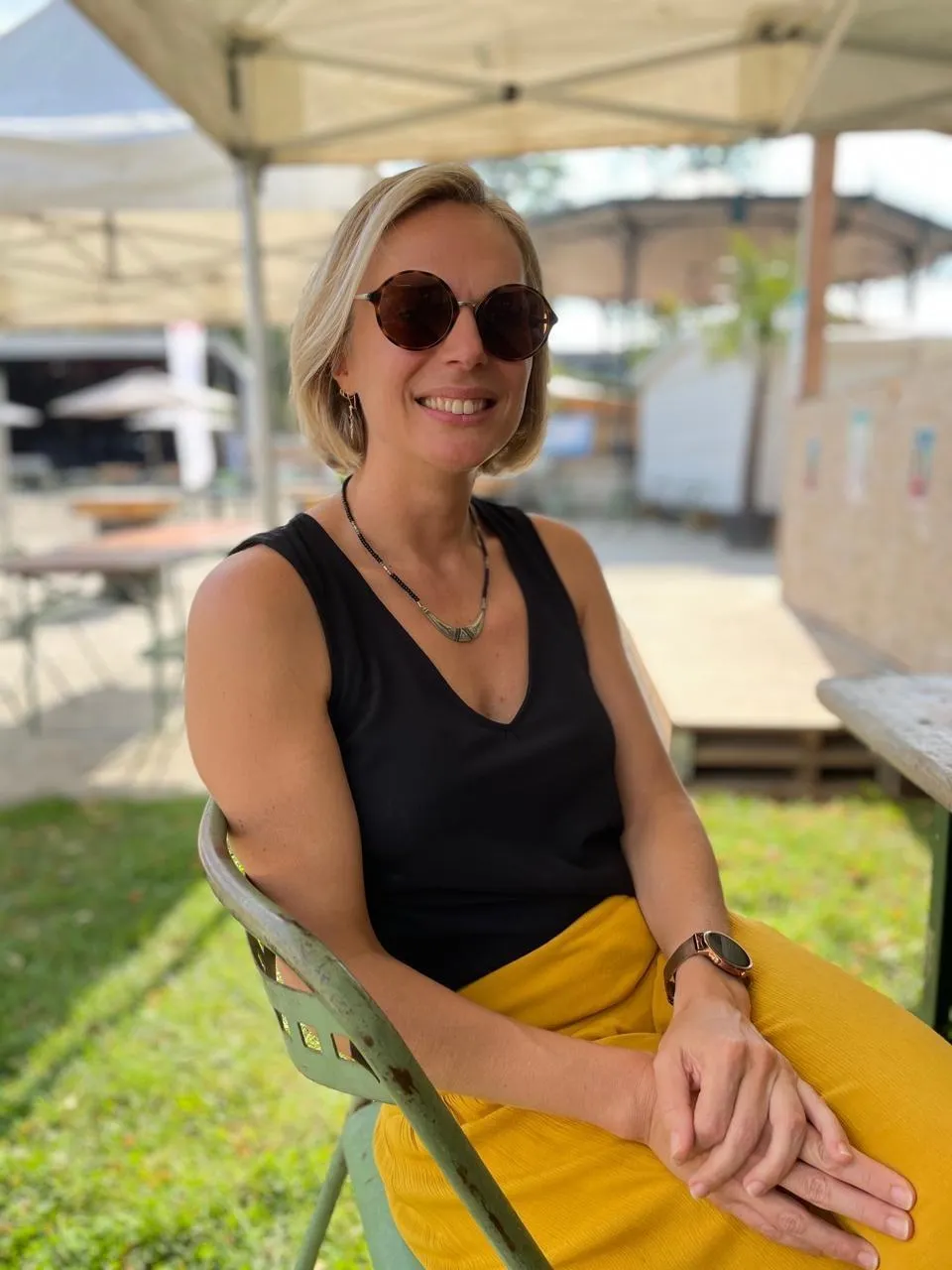 Julie, 44 ans : « J’étais déjà venue les samedis soir pour assister aux concerts de Bafang et Cyrarno du patelin… C’était génial ! Il y a moins de monde et d’ambiance que l’an dernier. Je pense que le passe sanitaire est un frein pour les jeunes non-vaccinés. La preuve, ils étaient attroupés derrière les grilles pour écouter la musique. Sinon, l’ambiance est familiale et sécurisée, c’est parfait pour venir avec les enfants. »