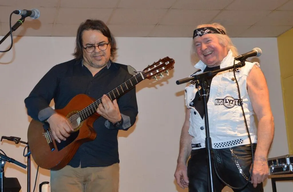 Ils se sont connus il y a quelques années dans les Landes et se sont retrouvés samedi soir, à la salle des fêtes, où ils ont donné un concert pour le plaisir. C’était une idée de Jérémy Provost, le patron du bar-tabac. Les deux amis de longue date se sont retrouvés sur scène afin de proposer un concert rock, des années 60 à 80. Jihem est musicien et vit à Toulouse. Son ami Yann est Écossais et vit en France depuis vingt-deux ans, à Soligny depuis deux ans. Il était ingénieur dans le bâtiment et restaurait les monuments historiques et chantait, en 1967, dans un groupe, Tangerine Peel, à Londres. Yann et son épouse, avant d’arriver à Soligny, vivaient dans les Landes et c’est là -bas qu’ils ont rencontré Jihem.