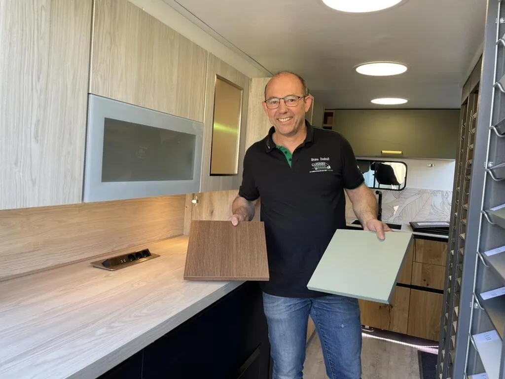 Depuis le début de l’année 2025, le cuisiniste Bruno Dudouit sillonne l’Orne au volant de son véhicule de démonstration. À l’arrière de ce camion-magasin, il propose plusieurs modèles de cuisines, de dressings et de salles de bains. « Un concept assez novateur », apprécie l’artisan originaire d’Argentan.