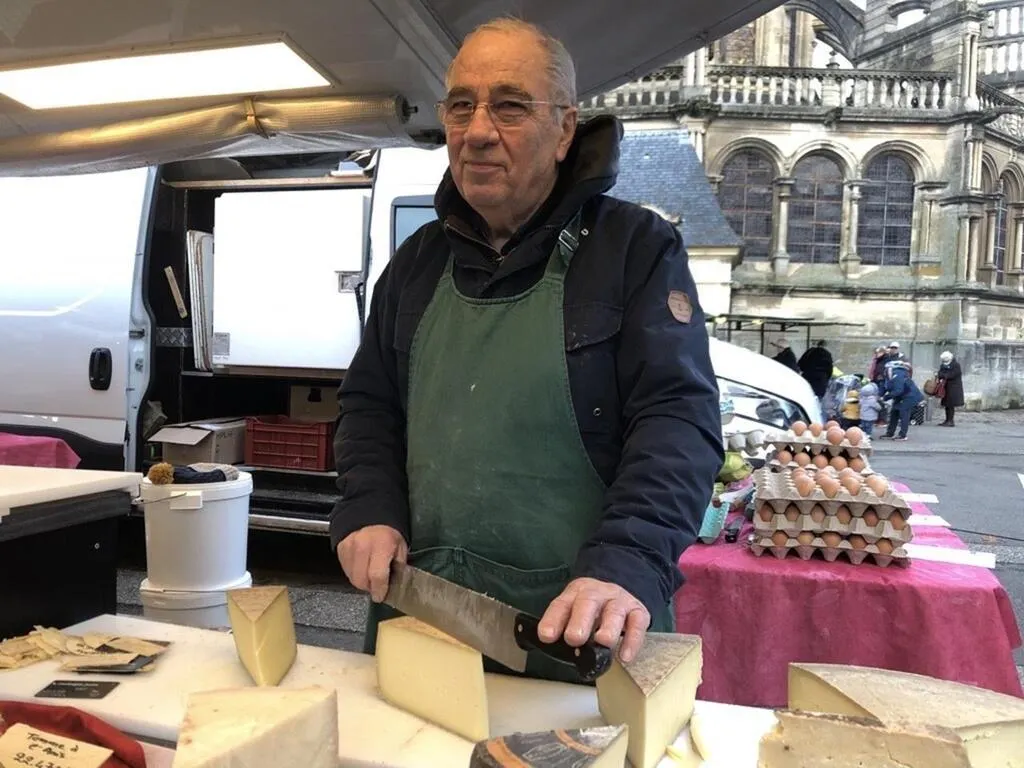 Sur le marché d’Argentan depuis 1987, Gérard Mercier est devenu fromager « presque par hasard »... |