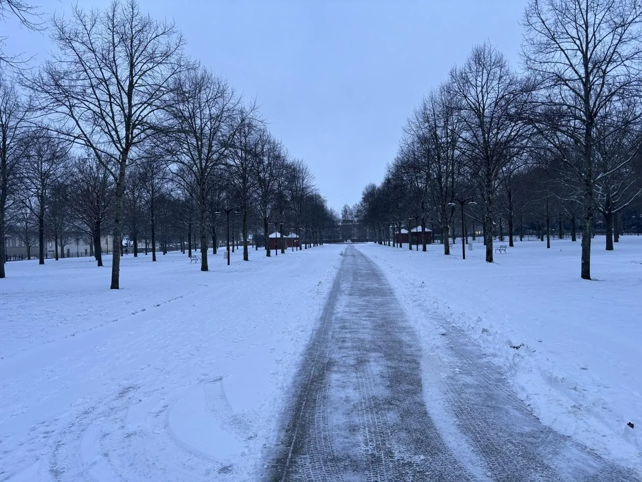 Le parc des Promenades à Alençon, sous la neige, mercredi 7 janvier 2026. © Ouest-France