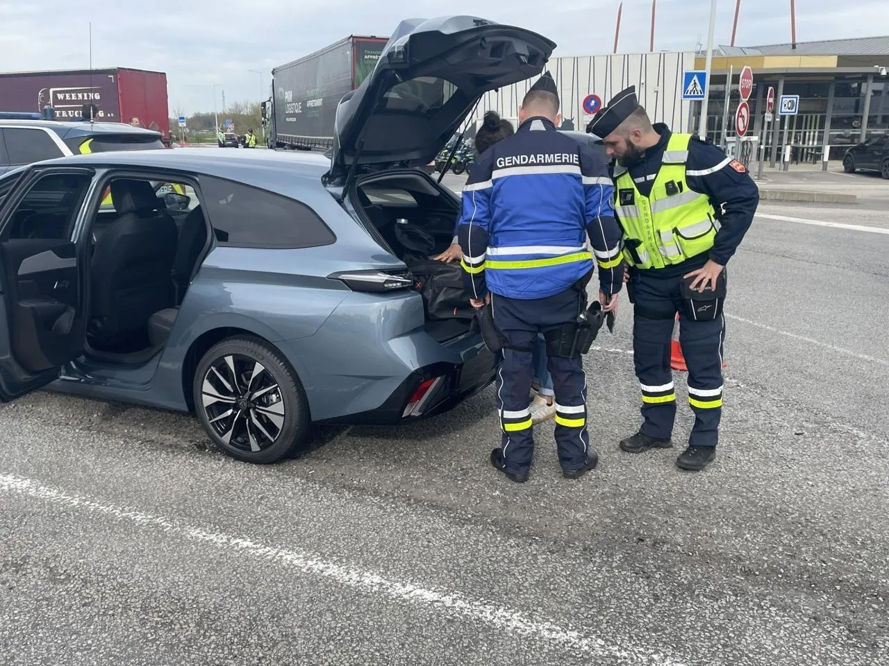 Un vaste contrôle de gendarmerie et des services de l’État a eu lieu mardi après-midi sur l’aire des Haras de l’A28, près de Gacé.. © Ouest-France