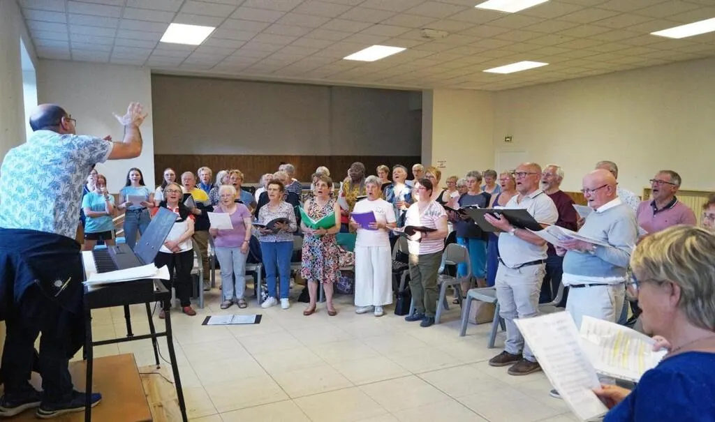 Tous les choristes se sont retrouvés dans la commune pour une répétition en commun, dirigée par Jean-Philippe Bignon. © Ouest-France